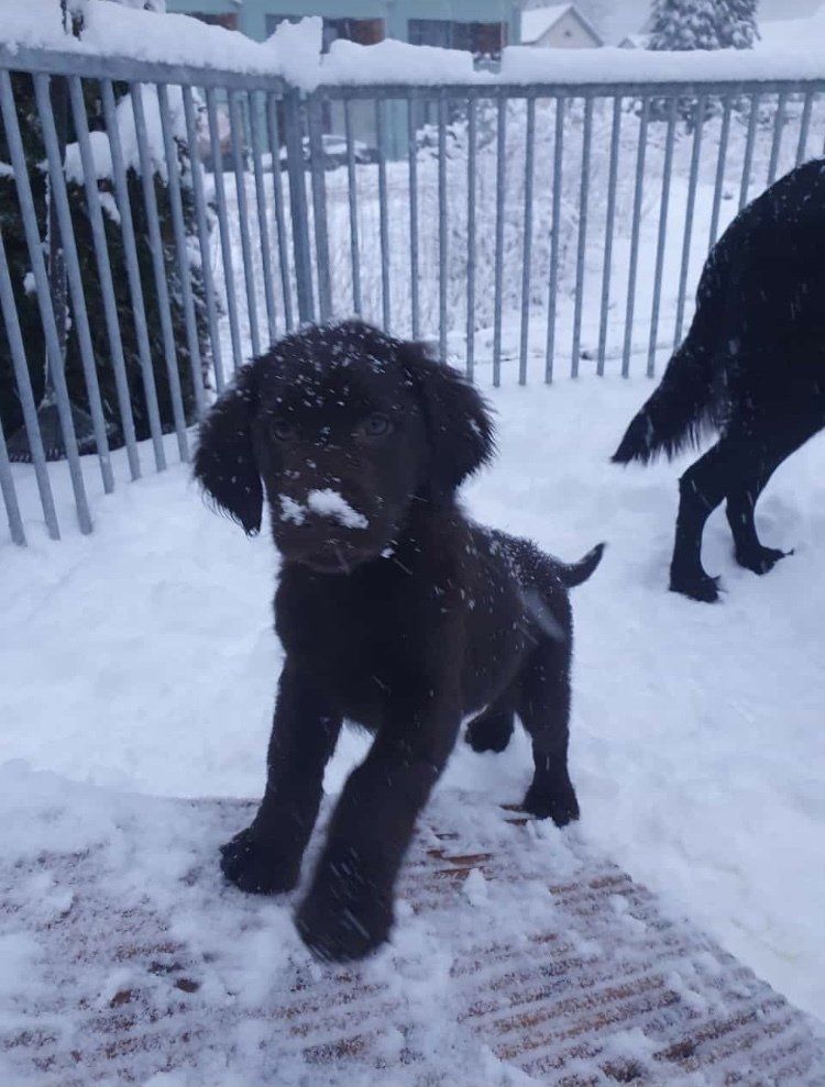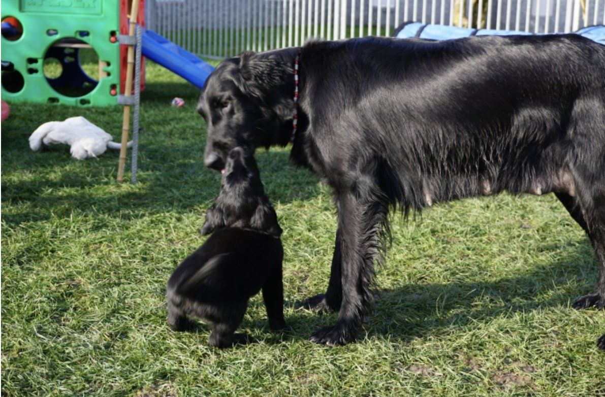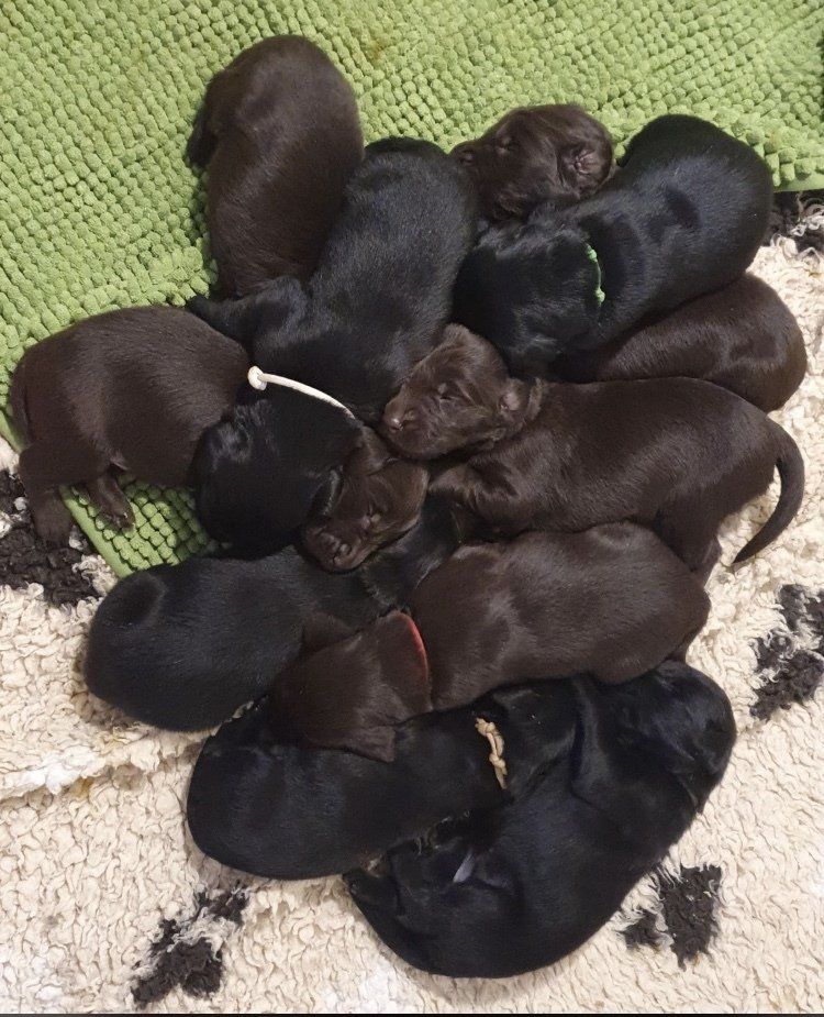 Am 13.11.2020 hat Obajra 11 Welpen geboren. 1 schwarzer Rüde, 2 braune Rüden, 4 schwarze Hündinnen und 4 braune Hündinnen. Eine Hündin blieb im Geburtskanal stecken, die Geburt ging nicht mehr weiter und es musste ein Kaiserschnitt gemacht werden. Leider ist die kleine Hündin verstorben🌈. Obajra hat die OP den Umständen entsprechend gut überstanden und kümmert sich liebevoll um die 11 Welpen.